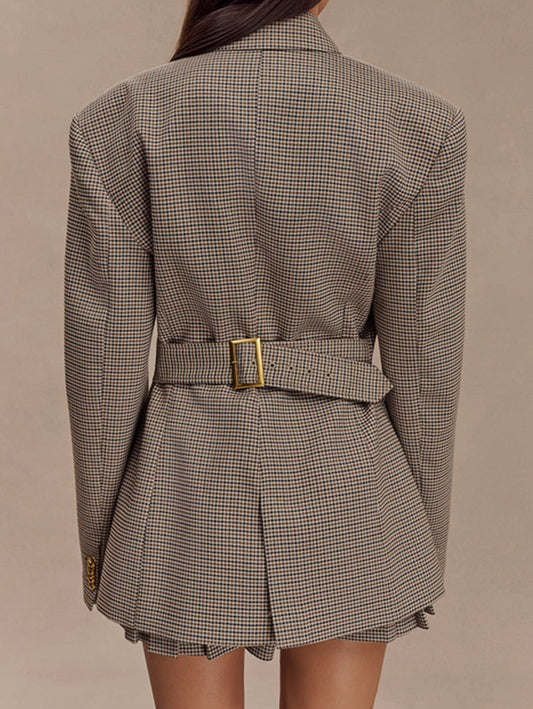 Vintage Chic Zweiteiler: Karierter Blazer & Faltenrock – Eleganter Herbst/Winterlook